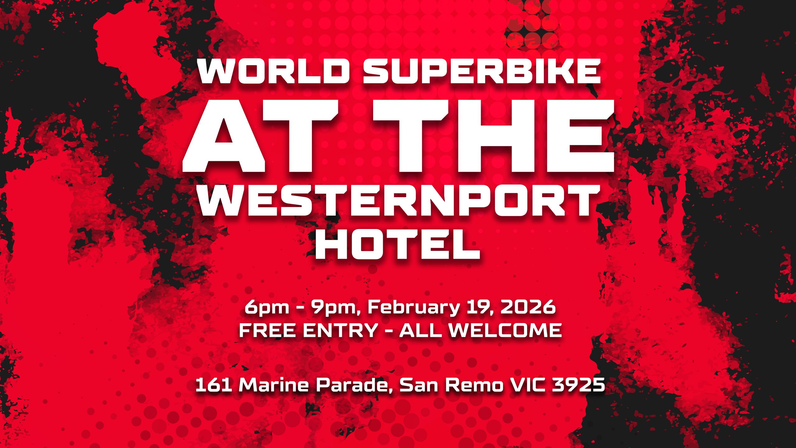 On Thursday, February 19, 6pm – 9pm, The Westernport Hotel at San Remo will open the doors to the MOTUL FIM Superbike World Championship for an evening of off-track activities.