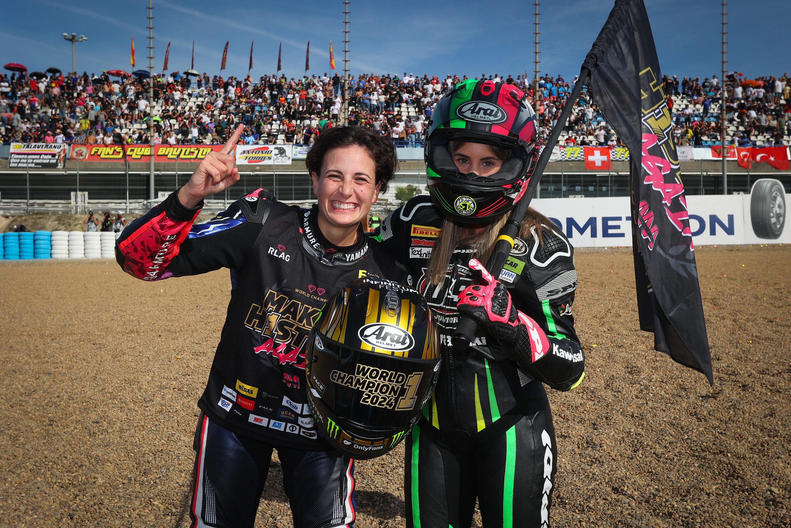In the Inaugural WorldWCR Championship season, Ana Carrasco (Evan Bros Racing Yamaha Team) is a two-time World Champion following her success in the FIM Women’s Circuit Racing World Championship. The #22 added that title to her 2018 WorldSSP300 Championship to make history in motorcycle racing. Third place in Race 2 at the Circuito de Jerez – Angel Nieto was enough to give Carrasco the inaugural Championship on a historic day at the Prometeon Spanish Round.